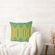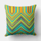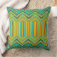 Tribal pattern pillow in aqua blue and gold colours. Bold lines and shapes vary on each side of this square throw pillow for the living room or porch. Change the look by flipping the pillow. Two designs in one.