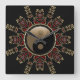 Tribal Red+Gold YinYang Geometric Sun Square Wall Clock