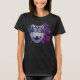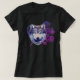 Tribal rose wolf T-shirt. Purple and blues Tribal roses framing one side of this beautiful wolf.