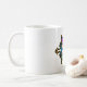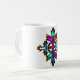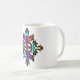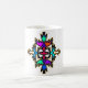 A vibrant ceramic mug featuring a colourful tribal cross design. This unique artistic pattern brings a bold and modern energy to your kitchen or office."