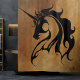Black tribal Unicorn profile against a stone background.