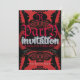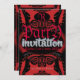 Striking red and black design with style fusions of Halloween with Gothic, leather, maybe even vaudeville. Trimmed with a sparkly silver glitter INVITATION text (or replace with your own). This unique alternative design invitations are suitable for Adult parties - Halloween, Gothic Birthday or a Special Party Invitation . All the text is fully customisable..