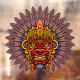 Tribal Warrior King Ritual Mask surrounded by a Feathers crown ritual ornamental apparel . South America/Africa/Oceania Indigenous traditions and Culture. Original vector illustration copyright BluedarkArt TheChameleonArt.