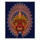 Tribal Warrior King Ritual Mask surrounded by a Feathers crown ritual ornamental apparel . South America/Africa/Oceania Indigenous traditions and Culture. Original vector illustration copyright BluedarkArt TheChameleonArt.