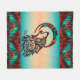This is a Unique "One of a Kind" Tribal Wolf Fleece Blanket! It Features a Native American Tribal Wolf on an Orange and Turquoise Background...Surrounded by a Southwest Border in Turquoise, Orange and Black!