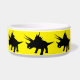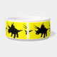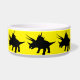 This pet bowl has a silhouette of a Triceratops on it.