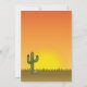 Destei's original cartoon illustration of a cute brown colour Triceratops dinosaur standing in a desert scene during sunset. There are some rocks, a cactus and a plant in the scene. The grass is dry and pictured in brown colour. The sun is setting right behind the dinosaur creating a reddish orange hue for the sky. Personalise the sample text areas with the details of your party.