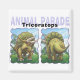 Animal Parade Cute Triceratops Dinosaur Gifts and Accessories brought to you by Imagine That! Design features our original art of a cute triceratops from the front and the back standing in a green prehistoric landscape with a textured blue sky and a fun wavy purple border painted by our talented children's illustrator, Traci Van Wagoner. This playful triceratops dino is great gift for kids of all ages, and is sure to bring a smile to the faces of all dinosaur lovers on your gift list.