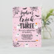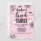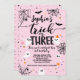 Trick or Three 3rd Birthday, Pink Halloween Invitation