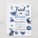 Trick Or Three Blue Halloween Kids 3rd Birthday Invitation