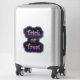 The stick looks amazing. Unfortunately, it would not stick on our suitcase as it was textured. When we found a non-textured (smooth) suitcase, the sticker stuck and looks great. The printing looked awesome.