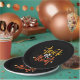 Trick or Treat Candy Corn Halloween Paper Plates features fun brush type and cute candy corn illustrations.