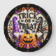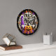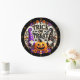This charming Halloween wall clock features two adorable gnomes in witch hats guarding a jack-o'-lantern, surrounded by "TRICK OR TREAT" text and spooky spiders. With vibrant purple and orange flowers, it's a delightful and whimsical addition to your autumn and holiday decor. Edit colour of the clock numbers in the Design tool to your favored colours.