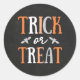 Festive Halloween stickers featuring a chalkboard background and colourful typography with the words "Trick or Treat" with two bats. Use these cute Halloween stickers for envelope seals, Halloween party favours, and more!