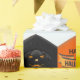 Contrast colours Halloween design with hexagons badge and Trick or Treat line.
