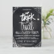 Trick or Treat Halloween Party Invitations. Introduce your Halloween party with these festive Halloween invitations featuring the words "Trick or Treat" with cobwebs and a pumpkin on the back. Customise this Halloween Invitation with your party details.
