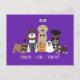 Cute illustration of dogs and a cat wearing Halloween costumes.