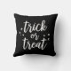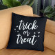 Celebrate Halloween in style with this "trick or treat" throw pillow featuring modern white script lettering and star accents on a black background.