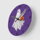 Trick Or Treating Ghost With Pumpkin Candy Bucket Round Clock