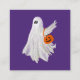 Trick Or Treating Ghost With Pumpkin Candy Bucket Square Business Card