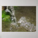 This scenic print features a photograph of a small waterfall trickling into a river showing how the water bubbles as it enters the river. The water was flowing into the river after a rainstorm.