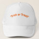 Top off your Halloween look with our "Trickster's Curse: Bewitched 'Trick or Treat' Hat." This hauntingly stylish hat features the iconic phrase "Trick or Treat" in bold, eerie lettering, making it the perfect accessory for your spooky celebrations. Crafted from high-quality, durable material, this hat is designed for comfort while adding a touch of Halloween magic to your outfit. Whether you're heading out for some candy-filled fun or simply embracing the spooky season, this hat is sure to cast a spell on anyone who sees it. Unleash your inner trickster this Halloween!