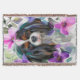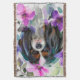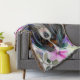 Throw blanket with Tricolor Cavalier king charles spaniel design, floral background. Anemone. Dog art.