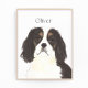 I am in love with this beautifully detailed watercolor illustration of a black, red, and white tricolor cavalier king charles spaniel! Personalise these art prints with your name or monogram to compliment your decor and change fonts by selecting the "edit using design tool" option at personalisation.