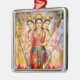 An ornament featuring an image of Lakshmi, Parvati, and Saraswati.