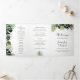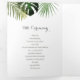 This trifold wedding ceremony program features lush green tropical plants hand painted in watercolor. Modern, exotic, and perfect for a destination wedding.