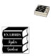 An Ex libris design with a stack of three books motif. Ex Libris on the top most book with customisable first and last names on the lower volumes in a stylish script font. The design can also be additionally customised e.g. to accommodate longer names etc.