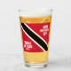 Celebrate Trinidad & Tobago Independence Day with this striking August 31st pint glass, which features the brilliant black, red, and white hues of this twin-island nation's flag. Customise messaging as desired. Reverse shows identical design.