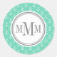 Trio Monogram Mint White Anchor Pattern Classic Round Sticker