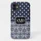 Trio Monogrammed Navy Damask Case-Mate iPhone Case