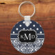 Trio Monogrammed Navy Damask Key Ring
