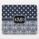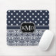 Trio Monogrammed Navy Damask Mouse Pad