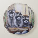 A trio of sweet little raccoons sits on a log surveying the forest. Image from my original art,