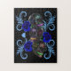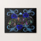 Triple Black Day Of The Dead Skulls Blue Roses Jigsaw Puzzle