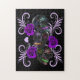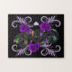 Triple Black Day Of The Dead Skulls Purple Roses Jigsaw Puzzle