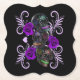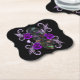 Triple Black Day Of The Dead Skulls Purple Roses Paper Coaster