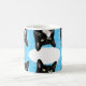 Add your own spin to this cute blue background triple tuxedo cat pattern thought bubble bright idea customisable blank saying outdoor speaking kitty photograph say meow super cute unique personalizable deluxe ceramic coffee tea or cocoa mug. Get an epic cat photo design cup today.