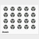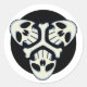 A Pop Art sticker featuring three skulls on a black circle with a three pronged bone in the center.