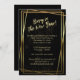 A modern, triple gold frame on a black background dusted with fine, gold glitter makes a simple, minimalist, and very elegant New Year's Eve party invitation. Could also be used for milestone birthdays, golden wedding anniversaries, and more.