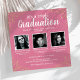 Stand out in style with our elegant joint graduation invitations, featuring a customisable girly pink background. Each invitation is adorned with a sprinkle of gold confetti glitter, showcasing photos of all three graduates, and it's all tied together with our modern triple celebration template. Personalisation has never been easier or looked so chic.