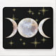 The Triple Moon is symbolic of the triple Goddess in her 3 phases of Maiden, Mother and Crone. Glowing with reflected light, the Moon represents light within the darkness, and is associated with the female divine energy. Lunar energy offers us the ability to connect with the flowing powers of magick and mystery and our powers of psychic perception and intuition. As it waxes and wanes and is reborn anew, the Moon brings us the potential to connect with our own ability to rejuvenate our lives.