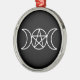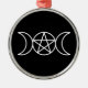 Elevate your holiday décor with this striking round metal Christmas ornament featuring a white Triple Moon Pentacle set against a black background. The Triple Moon, symbolising the phases of the moon—waxing, full, and waning—is a powerful representation of the goddess, making it a meaningful addition for those who honour Wicca, witchcraft, or pagan traditions.