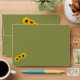 The magic number is three! This envelope is adorned with three sunflower photographs on the front and back flap over a textured green background for a special mailing occasion.