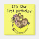 Three little monkeys, two girls and one boy, and a big yellow banana on Triplets 1st Birthday T-shirts, bodysuits, tote bags, cards, stickers, magnets, and much more.