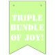 Welcome to the World Triplets announcement in pink, blue, green, white for the new baby boy and baby girl's. Personalise Blue Flags 2 and 3 with baby triplet boy's Photo, Name and Birth Stats. Personalise Pink Flags 13 through 16 with baby triplets girl's photos, names and birth stats. Or, leave cute baby feet images as is. Triple Bundle of Joy is written in white stencil text on green background on left end of banner. These are nice celebration bunting banners with large sturdy flags for hanging outdoors or can hang indoors in large area. Original Photography and Graphic Design Copyright © 2010, 2018 TamiraZDesigns.