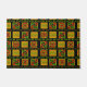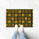 This doormat has a Black History design of circles, triangles, diamonds, lines, and zigzags forming a pattern.